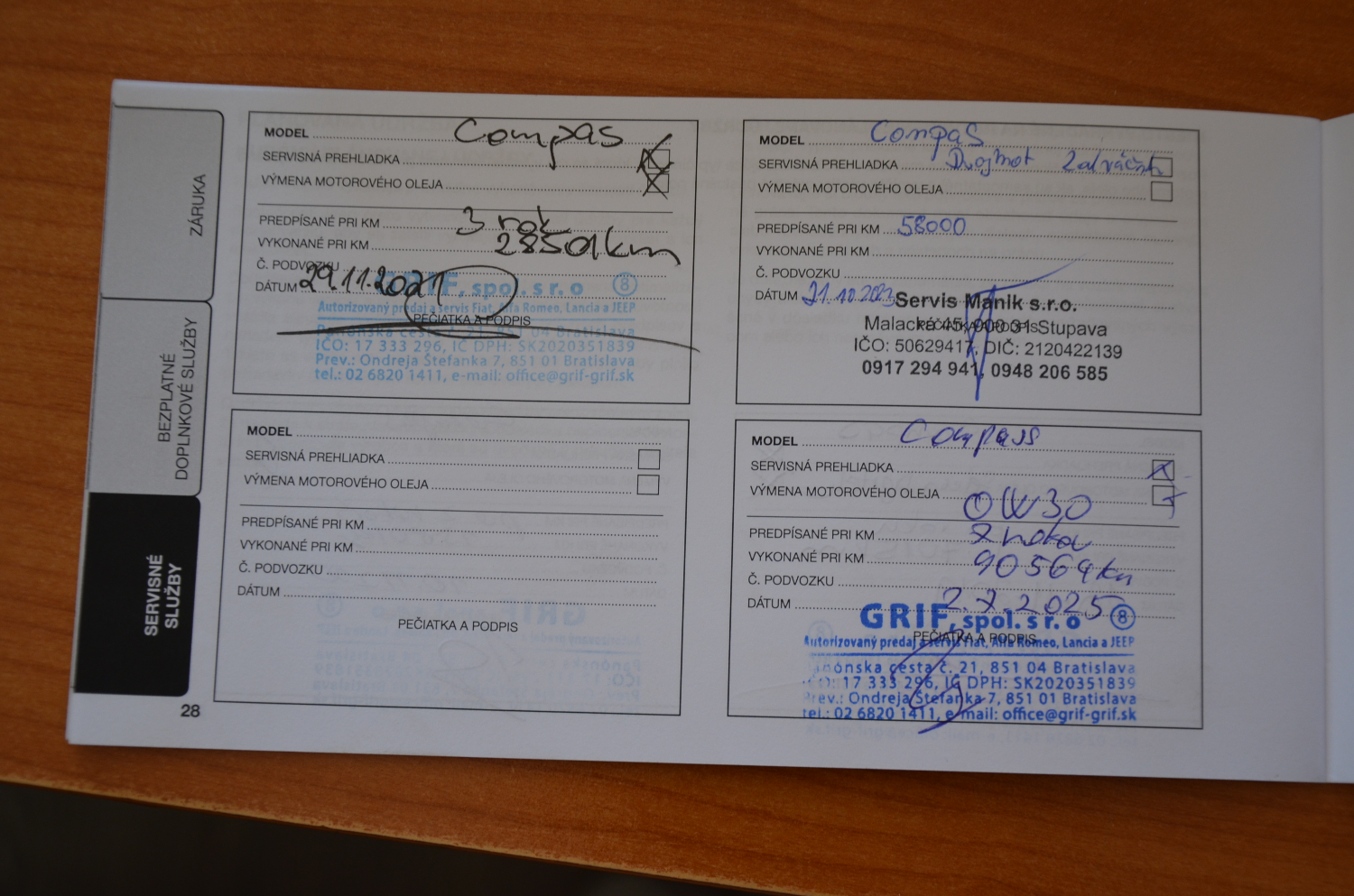 Kúpené v SR, Servisná knižka, Úplná servisná história