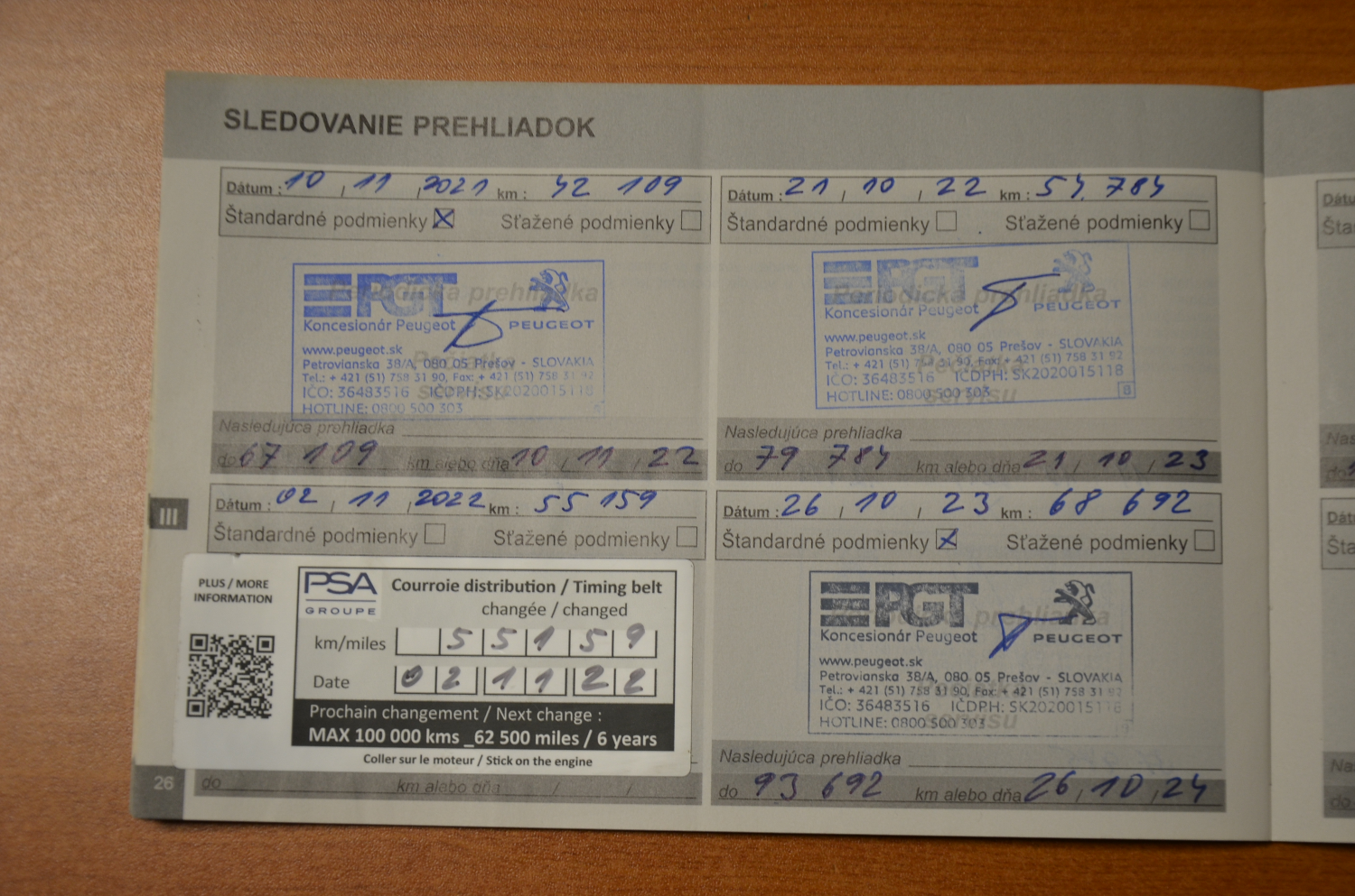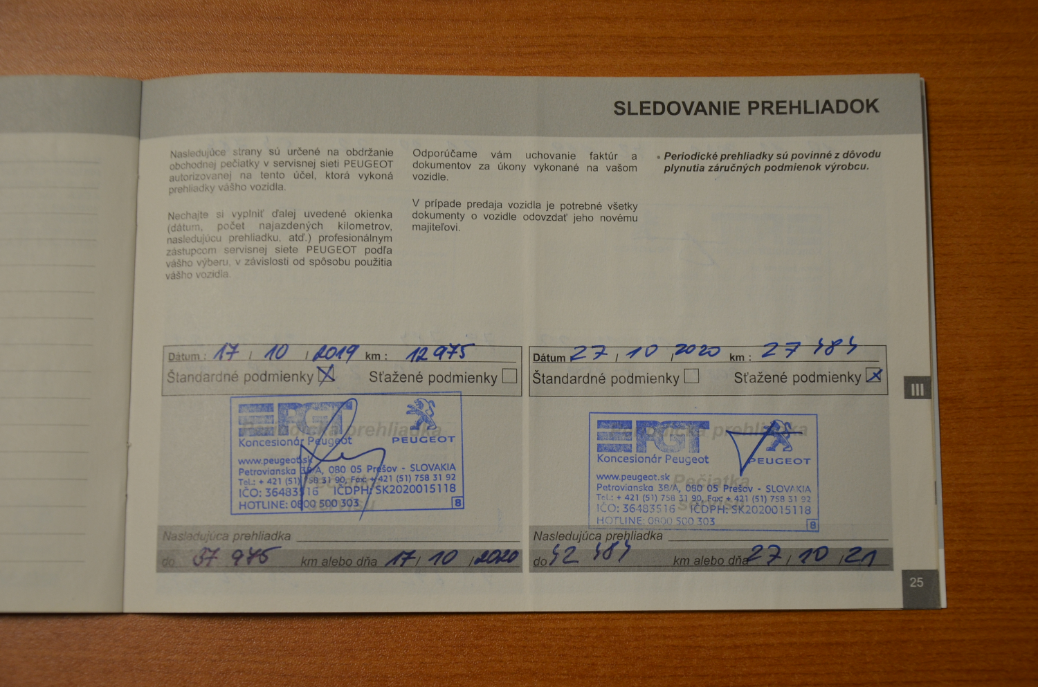 Kúpené v SR, Servisná knižka, Úplná servisná história